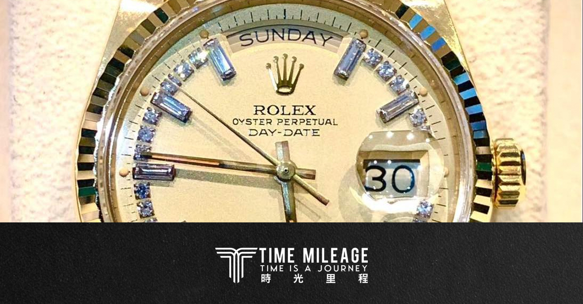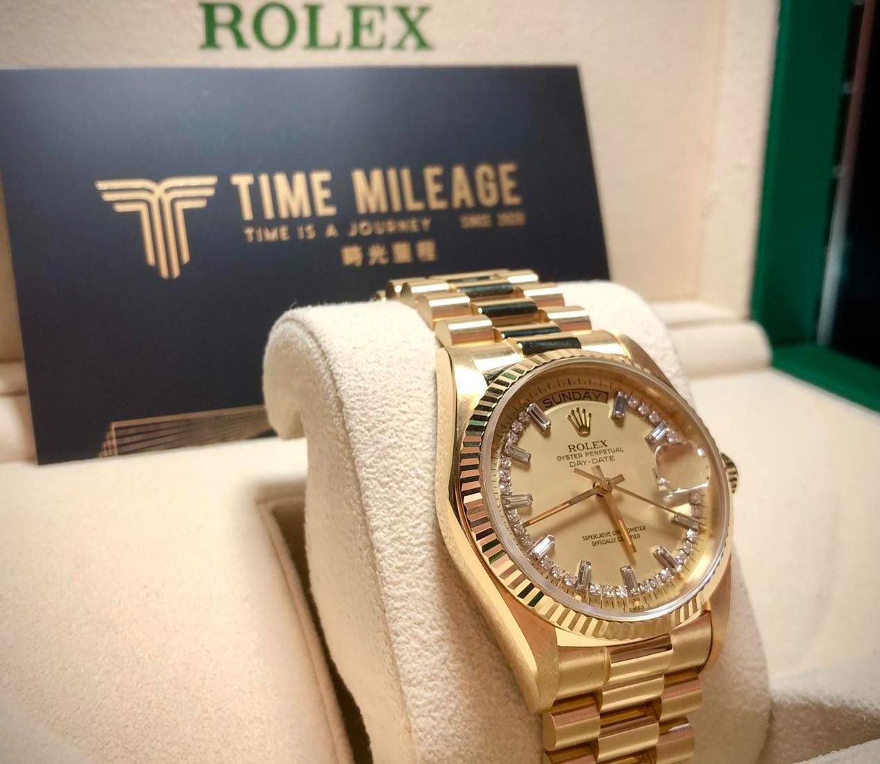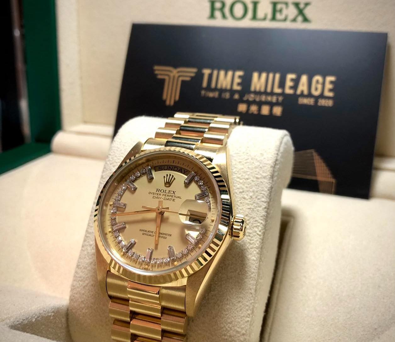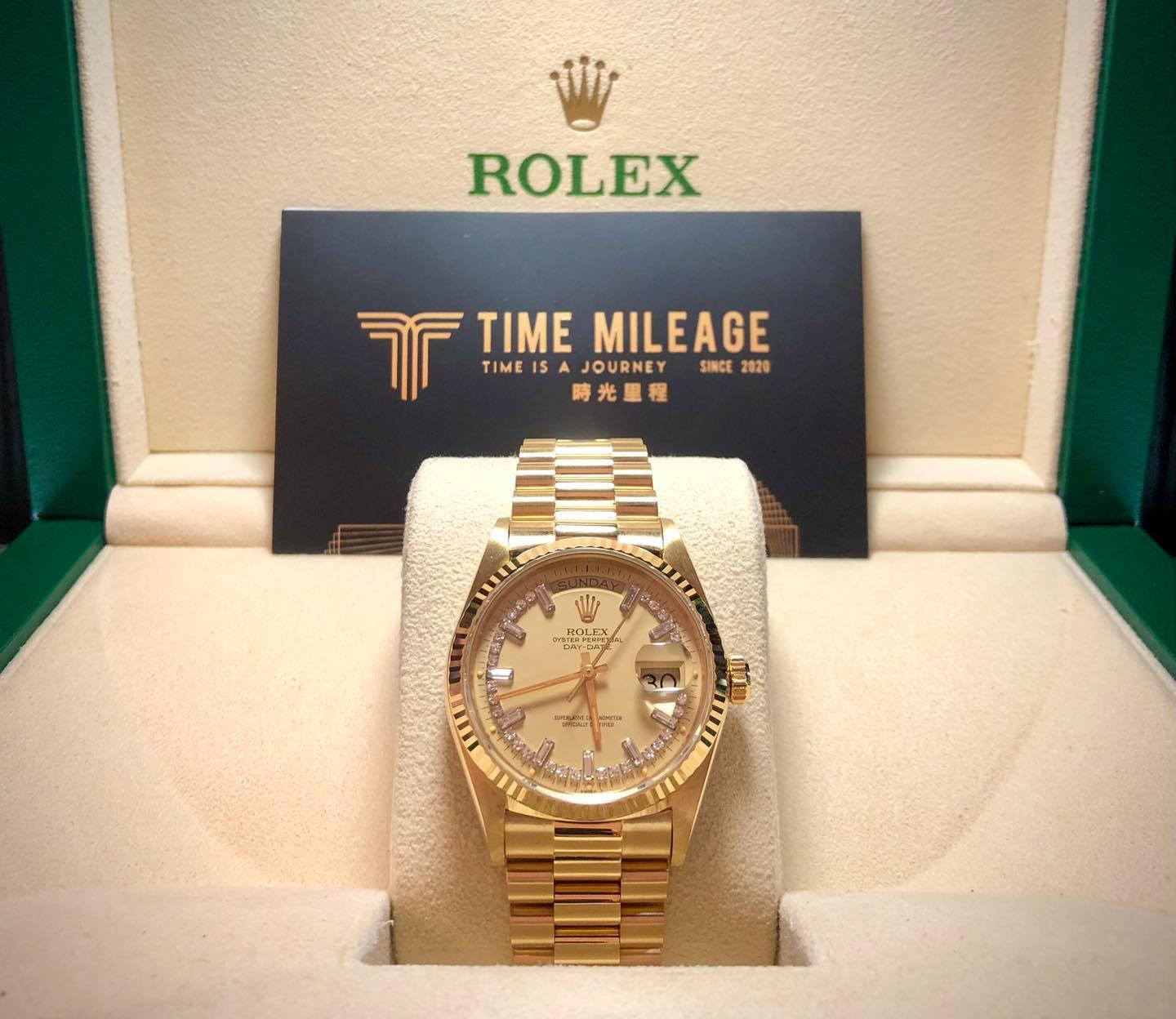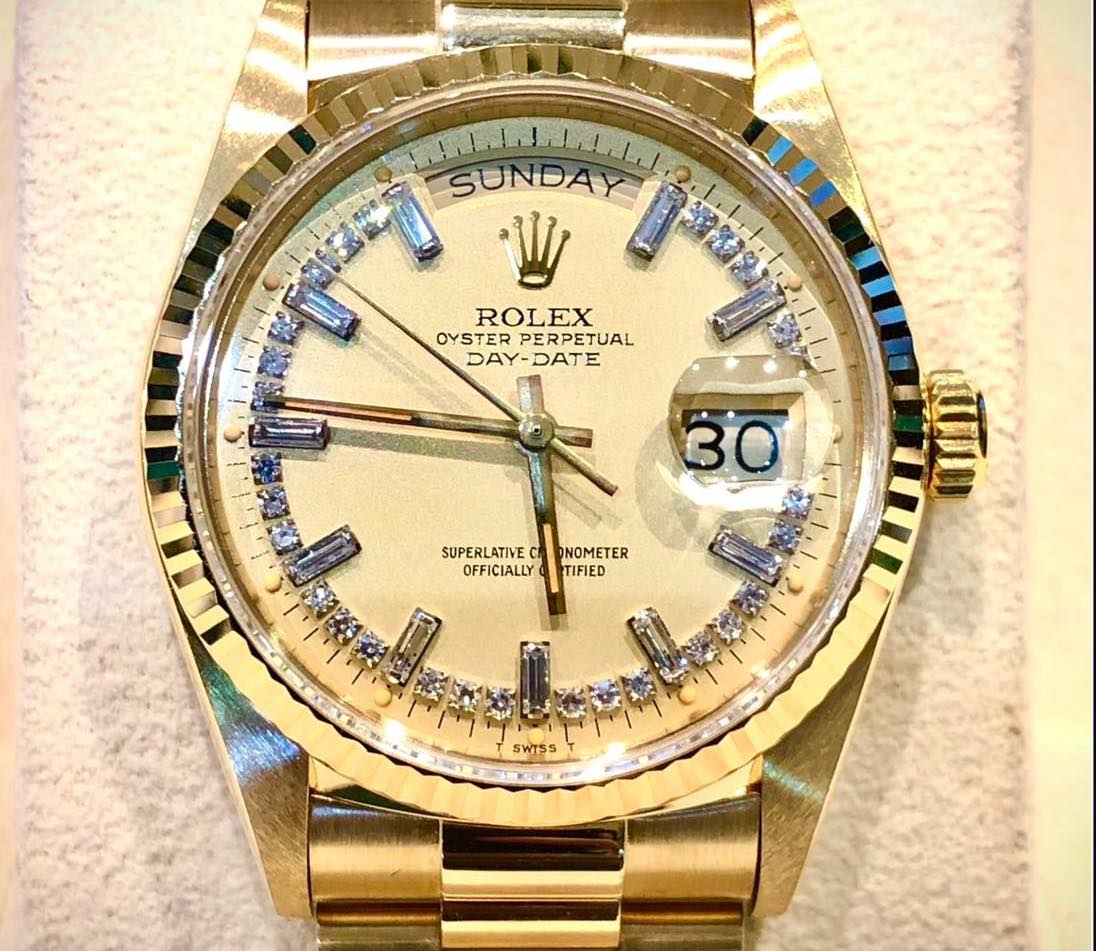 品牌:Rolex 勞力士 款式:Day-Date 36 String-Baguette-Diamond-Dial 編號:18038 機芯:自動機械 錶帶:18k黃金(總統帶) 錶殼物料:18k黃金 外圈:18k黃金 直徑:36mm 錶盤:金色 錶盤:鑽石 錶面:藍寶石水晶 年份:1985-86 價格:$146,800 Whatsapp 查詢